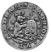REVERS : Un ours assis en train de piller une ruche, et assailli par les abeilles.                 Titulature : « PATIOR VT POTIAR » (« Je recommencerai jusqu’à réussir »)