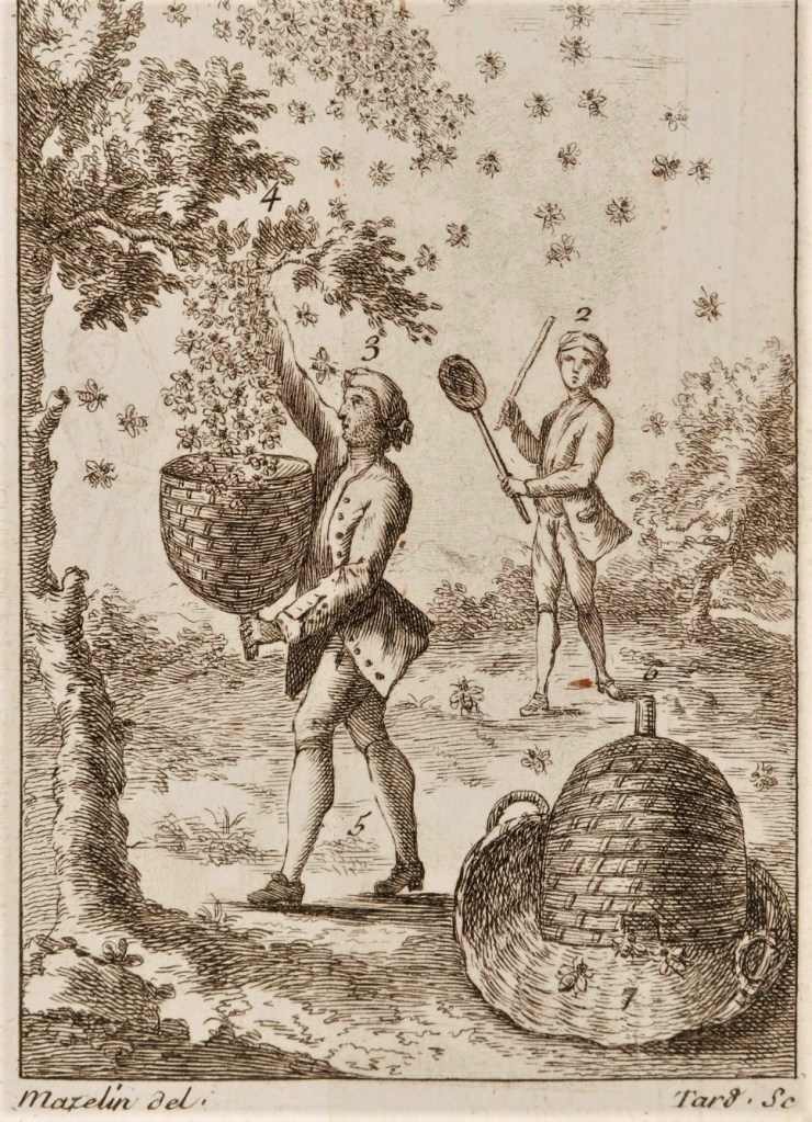 En 1740, l’avocat au Parlement de Paris Jean-Baptiste Simon1 publie (anonymement) à La Haye, chez Pierre de Hondt, la première édition de : « Le Gouvernement admirable, ou la République des abeilles avec les moyens d’en tirer une grande utilité ». Un manuel de « bon gouvernement des abeilles » en 51 chapitres –« vous ne trouverez dans ce livre ni érudition, ni style fleuri, mais la simplicité qu’exigent des instructions ». L’auteur s’y oppose d’emblée à la « détestable et punissable méthode », largement utilisée à l’époque de l’étouffement des abeilles pour récolter dans la ruche miel et cire/ Mais il développe aussi d’emblée de longues considérations politiques.