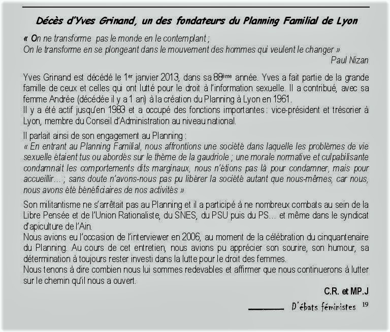 Yves et Andrée Grinand ont été également très actifs dans le développement du Planning familial du Rhône: