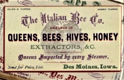 Comme son intitulé l’indique, la raison sociale principale de l’entreprise est l’importation d’abeilles italiennes ligustica, et leur vente par correspondance dans le Midwest américain, et au-delà13. On sait que l’importation transatlantique des abeilles italiennes a été, à l’époque, une véritable épopée logistique, se traduisant par des pertes très importantes pendant le voyage. Tupper et Savery vont donc financer en 1872 un voyage de Charles Dadant (1817-190214) en Italie, pour essayer d’améliorer les choses avec les producteurs italiens de reines. Par ailleurs, la compagnie fait commerce de miel, de ruches et autres matériels apicoles. Elle profite pour cela du nœud ferroviaire que devient à l’époque Des Moines, ville champignon du Midwest américain. Il y a clairement un partage des tâches entre les associées. Annie N.Savery apporte le capital, Ellen S.Tupper s’occupe du fonctionnement et de la logistique, de l’expédition des abeilles, mais aussi de la vente du miel, des extracteurs, et de la correspondance avec les fournisseurs et les clients. Les deux associées vont cependant participer ensemble à des conférences sur l’apiculture, et rédiger des textes semi-publicitaires sur les abeilles italiennes 15.