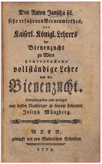Anton Janša, et la publication posthume de ses cours à l’école impériale et royale (k.u.k.) d’apiculture de Vienne par Joseph Müntzberg (1775)