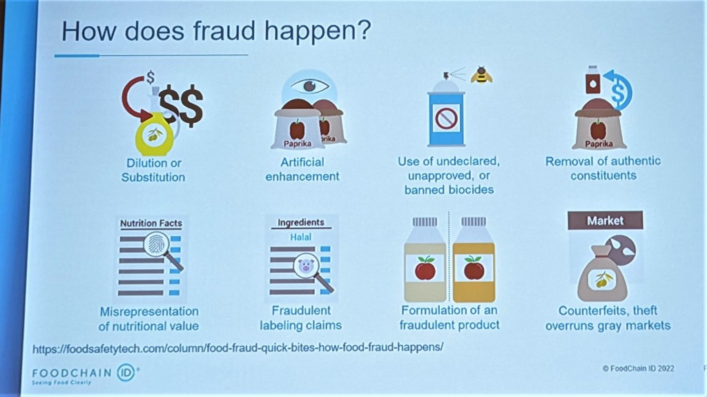 – Il faut une véritable maîtrise de la chaîne de valeur : historique et géopolitique des producteurs, des exportateurs, des importateurs, des grossistes, des distributeurs ; indices économiques pluri-annuels, historique des fraudes ; tests fréquents et aléatoires tout au long du processus….