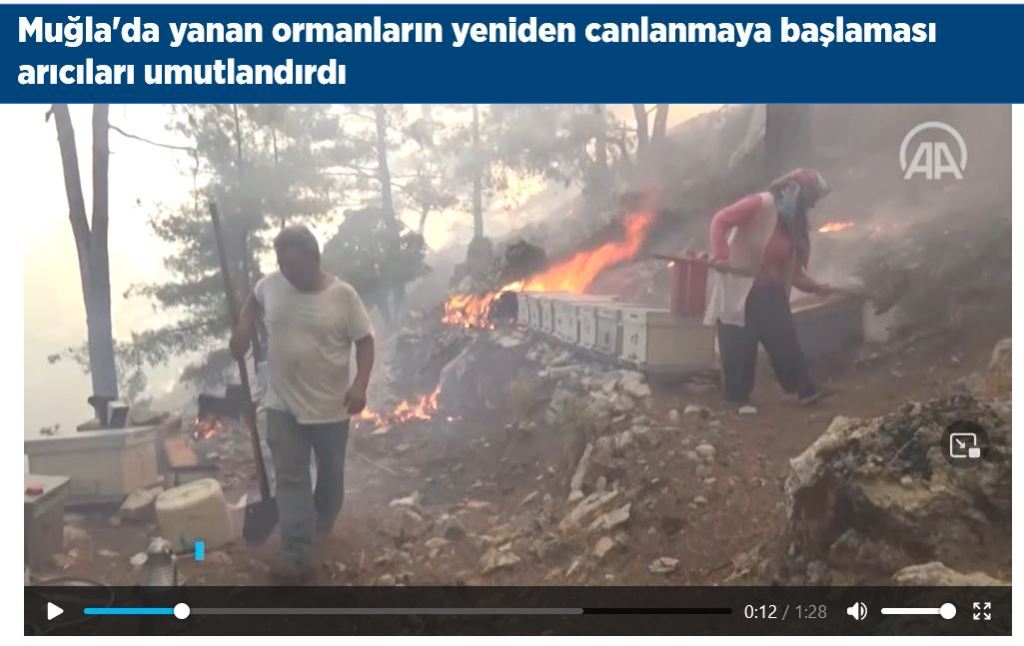 L’actualité le démontre ces dernières années, de la Californie au Pakistan, de la France à l’Australie : les intempéries extrêmes se multiplient, sécheresses, incendies (mégafeux) et inondations, tornades et typhons. Si l’on se focalise sur la Turquie, on peut prendre l’exemple de la région égéenne de Muğla (7), au sud-ouest. Cette région produit plus de 90 % du miel de pin mondial, avec environ 6 000 familles d’apiculteurs et 1,250 million de ruches locales, plus 3,5 millions de ruches de transhumance en septembre-octobre-novembre.. Or, depuis 2019, se cumulent dans cette région longues sécheresses, pluies diluviennes, hivers doux puis gelées de printemps lors de la floraison. Et la région a été impactée en juillet-août 2021 par deux semaines d’incendies majeurs dans des zones déjà affectées par la sécheresse. « Heureusement », ces incendies ont eu lieu alors que les ruches de l’Egée étaient pour partie en transhumance en Anatolie orientale, et avant la grande transhumance d’automne des régions orientales vers l’Egée. Mais on estime que 9000 tonnes ont été perdues en 2021 sur une production habituelle de 15000 tonnes, qui tend à stagner, voire à diminuer, du fait de ces calamités… Il faudra de nombreuses années pour que la forêt d’avant incendie se reconstitue. Par ailleurs, du fait du réchauffement, des menaces sérieuses pèsent sur Marchalina hellenica, (Çam pamuklu biti / le pou du cotonnier du pin), une cochenille du pin rouge dont les abeilles lèchent l’exsudat sucré pour le transformer en miel de pin.