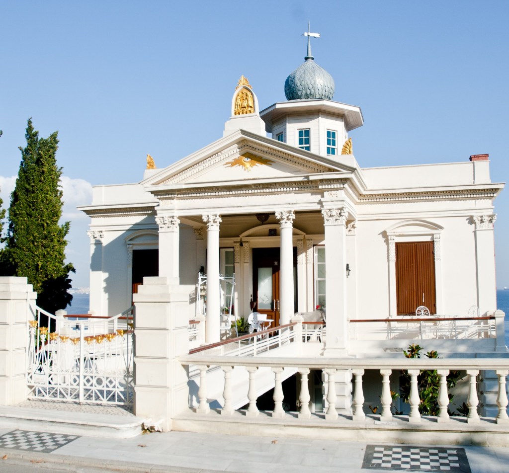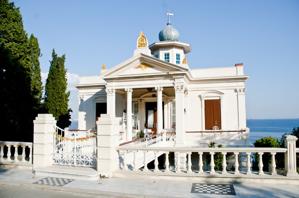 Au début du XXe siècle, grâce à l’aisance financière procurée par les émoluments du sultan Abdülhamid II au service duquel il est entré en 1891 (après une première carrière de religieux militant au Levant, puis une seconde carrière de journaliste d’opposition au sultan, à Londres !), le prêtre syriaque catholique et journaliste ottoman Louis Sabuncu (1838-1931) acquiert un terrain à Prinkipo [1], la principale des Îles des Princes (Adalar) [2]. Il y fait construire en 1903-1904 une vaste demeure dans l’actuel quartier Maden, au 31, rue Yılmaz Türk. Les plans en ont été tracés par l’architecte Periklis D. Fotiadis, professeur à l’Université d’Athènes. C’est un bâtiment en maçonnerie de style grec néo-classique sur plusieurs étages [3].