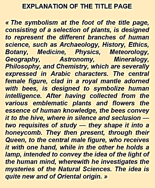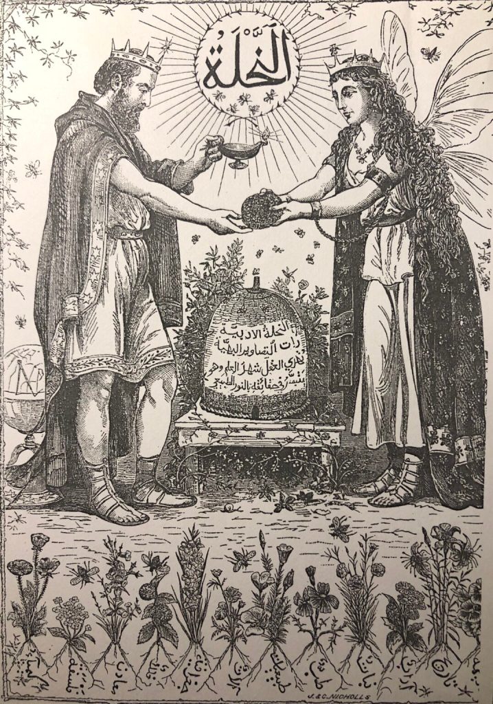 SABUNJI (SABUNCU) John Louis [1877], « Al-Nahle – Explanation of the Title Page », gravure introductive, Al-Nahle, July 1, 1877, no 1., page 2.